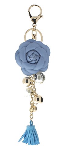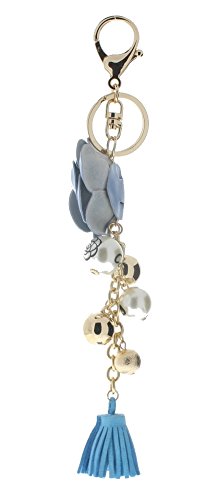 (T Square)/Accessories/Wallets, Money Key Organizers/DIRECT FROM USA/Key Chain Fob Phone Purse Charm Blue Flower Tassel Dangle Pearl Beads