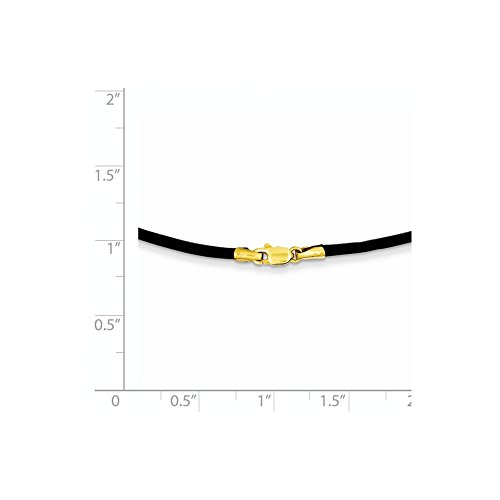 Solid 14k Yellow Gold 2mm 16in Black Leather Cord Necklace Chain 16" - with Secure Lobster Lock Clasp