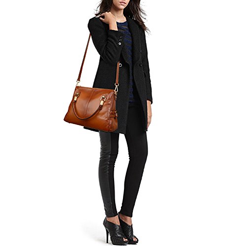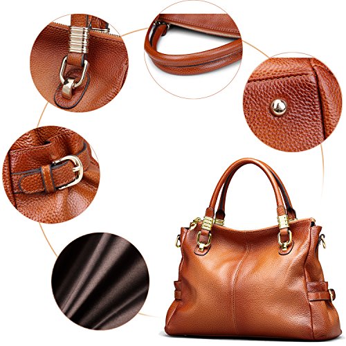 Occasions: casual daily carring, work utility, business, dress, formal, fashion, business casual. This handbag could be used as top-handle handbag, wrist handbag, shoulder bag, cross body bag, and also hold on elbow. Perfect gift choice for ladies.Its leather is specially designed, spraying daker color brown by side and edge, decorating this leather handbags into two tone color of retro style .