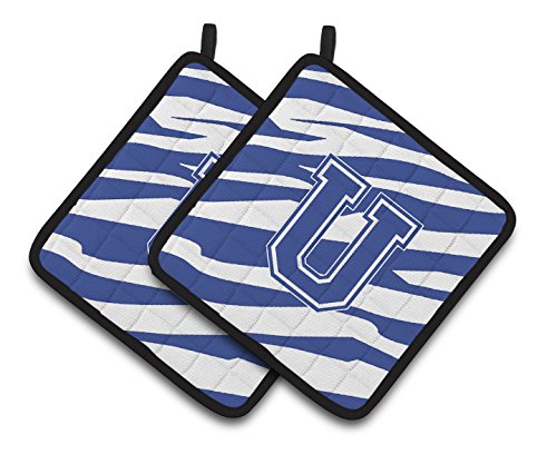 Caroline's Treasures Monogram Initial U Tiger Stripe Blue & White Pair of Pot Holders CJ1034-UPTHD, 7.5HX7.5W, Multicolor