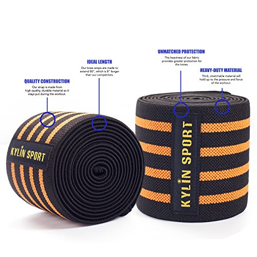 -. Title : KYLIN SPORT 79" Knee Wrap (Pair) Elasticated Compression Knee Support for Cross Training WODs Gym Workout Weightlifting Fitness Powerlifting / Man and Woman