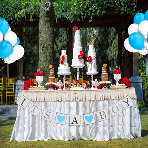 -. Feature : CONGRATULATIONS! :Congratulations on your baby announcement! It's a boy! What better way to celebrate than with our hand strung, premium quality burlap banner and balloon set. Our baby shower decorations will add that taste of rustic décor and welcome your bundle of joy into the world. / EASY TO USE - This easy to use banner can be hung on your mantle, above your snack/desert table, tree,dining room chandelier,mounted on the walls, veranda, window, table centerpieces or use as a photo prop, they are perfect in size measuring 4.7x4.7 Inch, they can be hung with tape, tied, or tacked and the Pennant can be adjusted based on your requirement as they are moveable along the strings. / HIGH QUALITY BANNER AND BALLOONS:Each Letters is P.R.Inted on a very nice thick card instead of flimsy.Latex balloons made from durable latex material, let you worry free about them tearing or bursting when inflated / WARM PROMPT:The garland comes pre-folded. You need to string them together with ropes.but it's very easy .The string does have to be put through pre-cut holes in the letters so make sure you give yourself a few minutes for assembly,and you will enjoy the DIY. / BUY WITH CONFIDENCE - You are covered with full money back guarantee If you are not happy with your purchase.We offer a 30-day full refund if you do not find our party supplies useful.