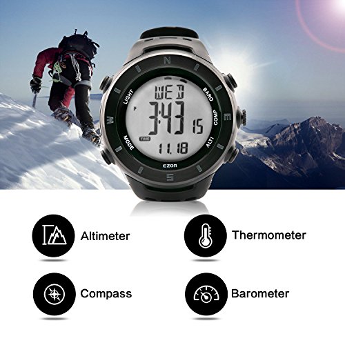 This is a multi-functional waterproof climbing watch combines these functions: altimeter, barometer, thermometer, electronic compass, alarm, Calendar etc.