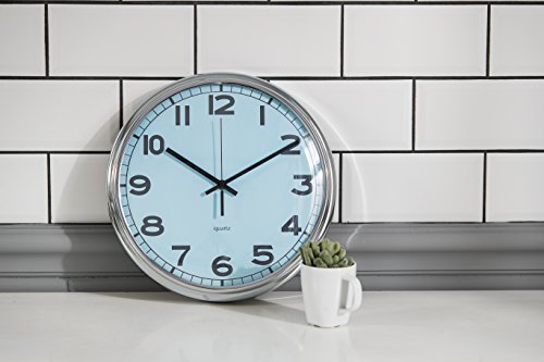 -. Binding : Kitchen -. Brand : Arospa -. Feature : Non-ticking silent sweeping clock hand technology / Bold numbers ensure visibility and easy to read time / Sure to liven up any living space with these colorful spring colors / Tough clock frame to ensure product durability & longevity / Nail slot available on back to ensure safe & easy mounting -. IsAutographed : 0 -. Label : Arospa -. Manufacturer : Arospa -. Model : 12" Curved Pastel Retro -. ProductGroup : Home -. ProductTypeName : HOME -. Publisher : Arospa -. Size : 12" -. Studio : Arospa -. Title : Modern Pastel Retro Curved Face Design 12” Non-Ticking Sweep Silent Wall Clock with Silver Chrome Finished Frame -. Warranty : 1 year.