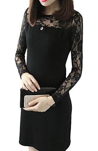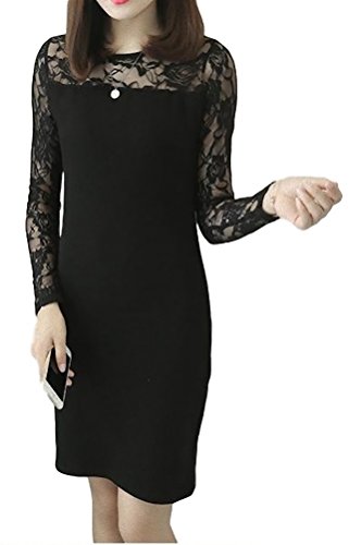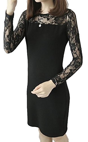 -. Feature : シックでエレガントな黒のフォーマル対応パーティードレスです。長袖部分がレース装飾となっています。ひざ丈サイズのタイトなシルエットがあなたの美しさを際立たせます。 / サイズ:M(着丈76cm 胸囲74cm 肩幅30cm 袖丈56cm 腰回り80cm)、L(着丈78cm 胸囲86cm 肩幅37cm 袖丈57cm 腰回り88cm)※およその目安となります。 / 色:黒 ※実際の商品とは色味や素材感が異なって見える場合がございます。 / 素材:コットン、ポリエステル / ※海外生産のため、商品によっては多少の縫製の甘さが出る場合もございます。ご理解のほどよろしくお願いいたします。