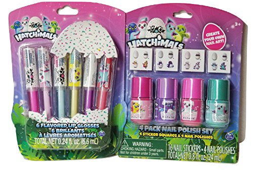 Hatchimals 6 Flavored Lip Gloss and 4 Pack Nail Polish Set