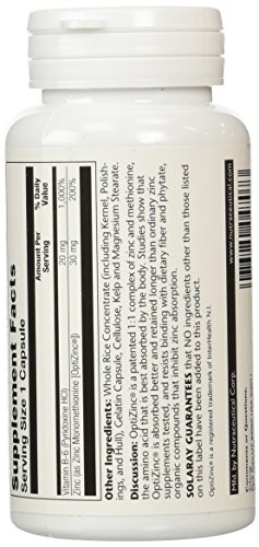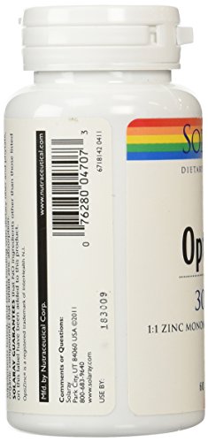 -. Binding : Health and Beauty -. Brand : Solaray -. EAN : 0212458243506 -. Feature : Amino acid that is most easily absorbed into the body to put into the product / Retained longer and absorbed better than any zinc supplement / Zinc adds that extra boost to your immune system that you need to stay healthy -. IsAdultProduct : 0 -. Label : Solaray -. Manufacturer : Solaray -. Model : Optizinc -. MPN : 076280047073 -. NumberOfItems : 1 -. PackageQuantity : 1 -. PartNumber : 076280047073 -. ProductGroup : Health and Beauty -. ProductTypeName : HEALTH_PERSONAL_CARE -. PublicationDate : 2014-10-17 -. Publisher : Solaray -. ReleaseDate : 2015-03-19 -. Size : 60 -. Studio : Solaray -. Title : Solaray Optizinc Supplement, 30 mg, 60 Count -. UPC : 076280047073