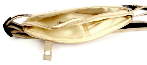 -. Feature : SECURE ZIP STOPPER - added Velcro strap prevents zips from accidentally unzipping. / CONCEALED BUCKLE - extra security by concealing the buckle in a hidden pouch. / MULTIPLE POCKETS - For important documents, tickets, mobile phone, dua books etc. / REINFORCED WIRE - Makes the waiste bag slash proof. / SAFE - DURABLE - PROTECTIVE - ANTI-THEFT - SLASH PROOF