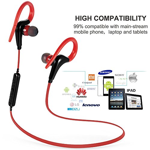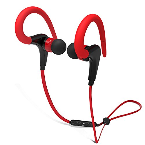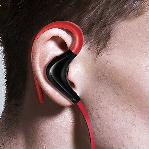 Title : [Noise Cancellation]Bluetooth Sports Earphones, Wireless Stereo Headset with Soft Ear Hooks.Sweet-proof Headphone Ideal for Running, Jogging. (Red)