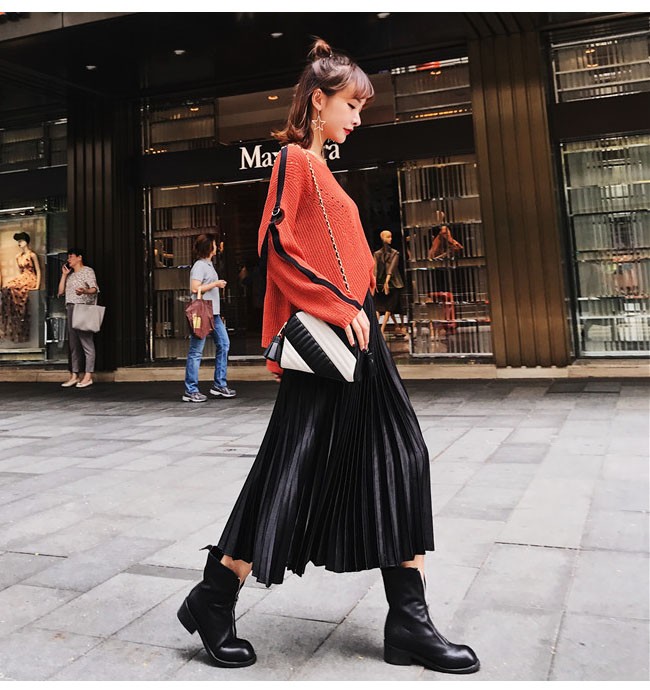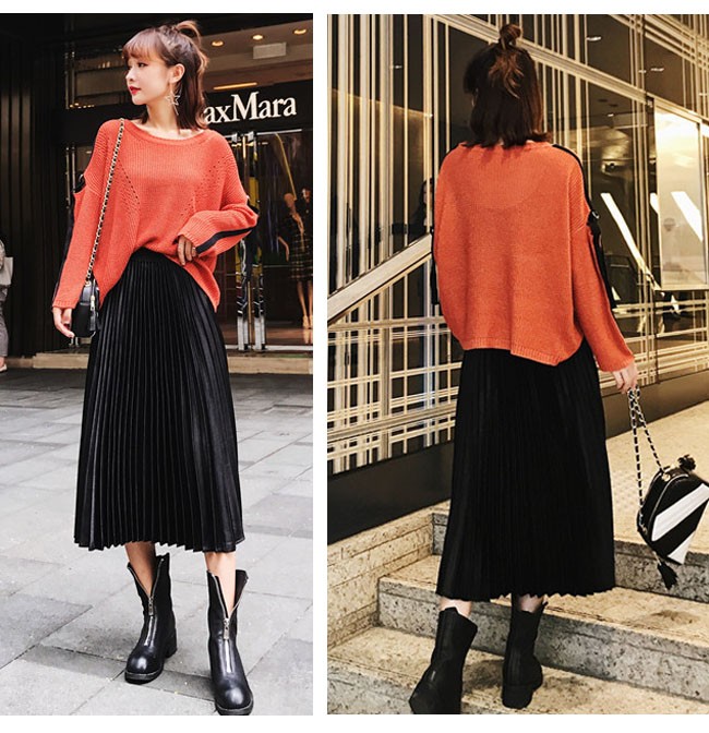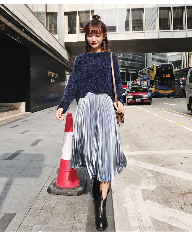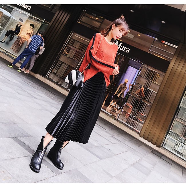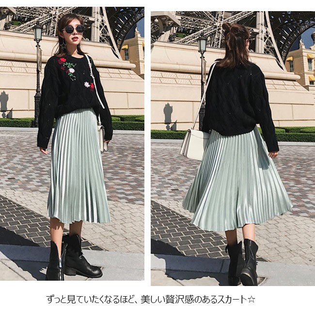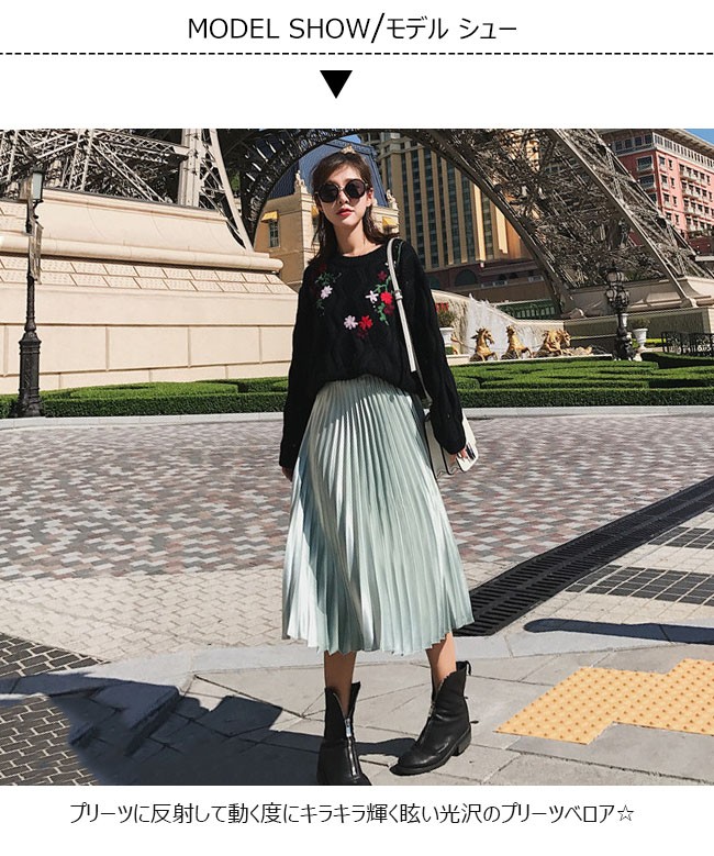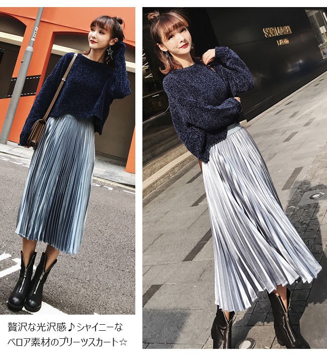 贅沢な光沢感♪シャイニーな ベロア素材のプリーツスカート☆