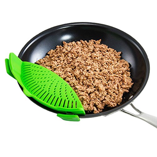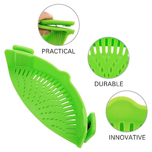 Here's why This Pot Strainer Is the Last One You Will Ever Need: ? Premium quality, food grade silicone pot strainer! ? Clip on and drain in seconds! Hassle free cleaning, dishwasher safe draining kit. ? Resilient clip on snaps for a secure and firm fit. ? Ideal for pasta, rice, potatoes, spaghetti, vegetables, soup, eggs, meat stock, or excess liquid and fat! ? Fits all bowls, pots, pans, woks, either small or big. ? Comes in a wonderful gift box and makes a thoughtful housewarming gift!