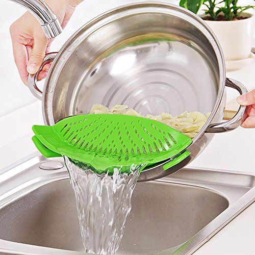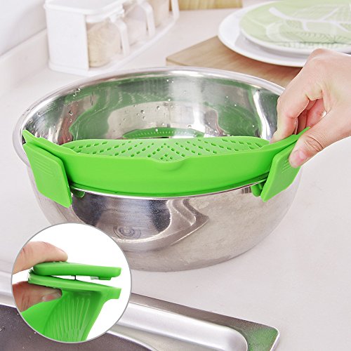Every kitchen chef loves this universal design and easy-to-use approach to straining. No need for a special pot strainer, just buy this hot kitchen gadget! Place the clip-on snaps on any bowl or pot and rest assured that it won't scratch your precious pots. It's made from high quality food grade silicone that is BPA free and heat resistant as well!