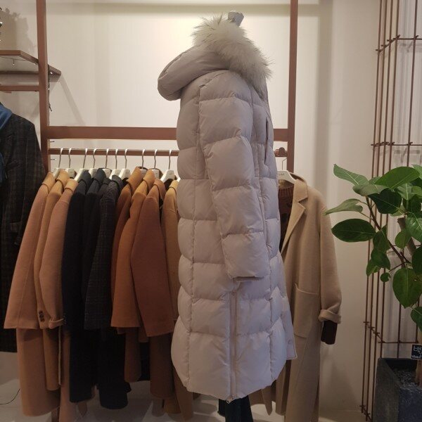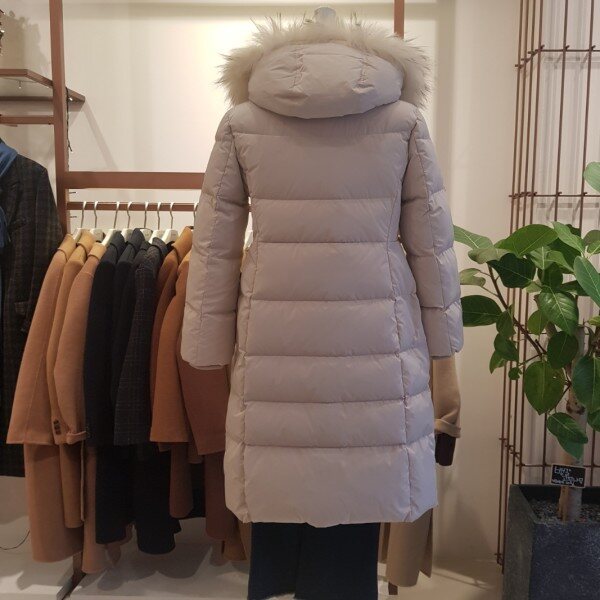 오리털이 빵빵하게 들어가잇으나 날씬한핏으로 예쁘게 떨어진 롱패딩입니다후드 탈부착 가능하며 퍼만 따로 털어지지는 않아요~소매가 니트 시보리 되어잇어 단정함을 주는 덕다운입니다.포켓이 아래위로 두개씩 되어있어서 더욱 실용적입니다