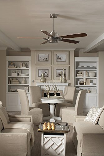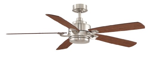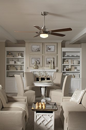 Classy and understated, The Benito by Animation is the kind of ceiling fan that provides subtle style to any room. The Benito is available in oil-rubbed bronze finish with reversible mahogany/walnut wood blades and satin nickel finish with reversible cherry/walnut wood blades. Candelabra bulbs encased in opal frosted glass complete The Benito's upscale look while providing a soft and soothing light. The Benito operates on three and forward and reverse speeds and includes a hand-held remote control. The Benito also includes a 4. 5" down rod and accommodates a ceiling slope up to 30 degrees.Feature