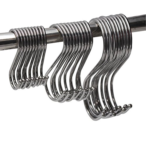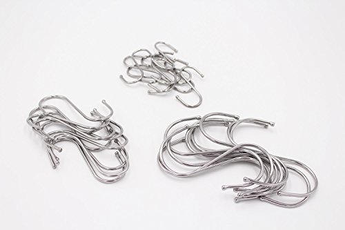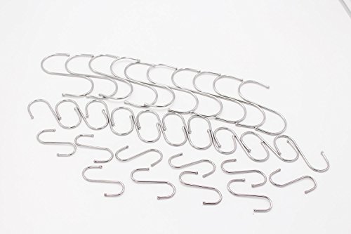 LAOZHOU 30 Pack of Small,Medium,Large S Hook,Scarf Apparel Punch Cup Bowl Kitchen S Shaped Silver Stainless Steel Hanging Hooks (30 Pack(Small+M+Large))