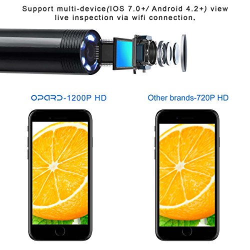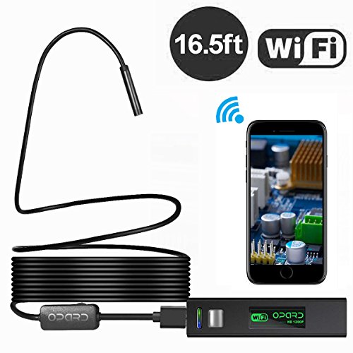 Opard 1200P HD Wireless Endoscope WiFi Borescope 8mm Inspection Camera IP68 Waterproof 8 LED Snake Camera for Apple iOS Android iPhone Mac Windows (16.5ft/5M No Network Required)