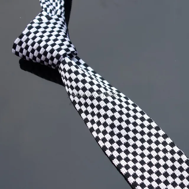 | [해외]니트 좁은 넥타이 목에 넥타이 남성 넥타이 블랙 화이트 checkedties 폭: 5 센치메터 |