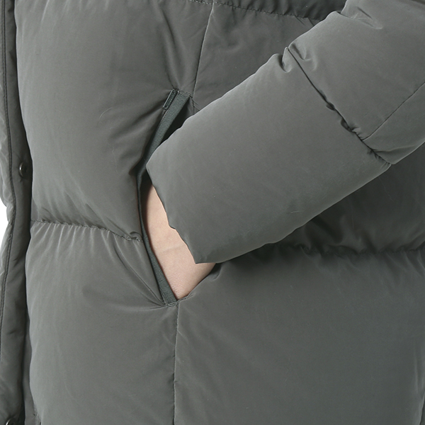 가벼운 소재의 두께감이 있는 충전재를 더하여 보온성이 뛰어나며 밑단 이면으로