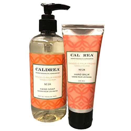 Whether it is a fancy dinner or a quick get together, indulge your hosts with our special Hostess Gift Set. The fresh scents and elegant presentation perfectly compliment any kitchen or bath. Pamper hard-working hands with this beautiful Hand Soap and Hand Balm set. Caldrea Hand Soap leaves hands soft, clean, and fragrant. Caldrea Hand Balm, with Shea Butter, sinks in quickly, leaving hands soft and delicately scented.TANGELO PALM FROND