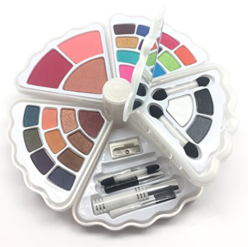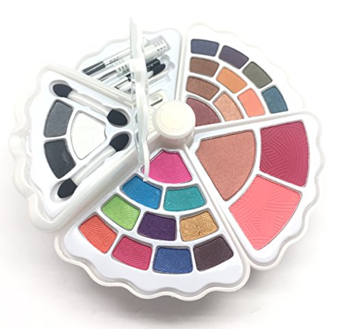 A compact multi-use makeup palette with trendy colors. All-in-one makeup palette for face, lip and eyes Elegant Shell Shape applicators and mirror included Convenient travel Size.Feature