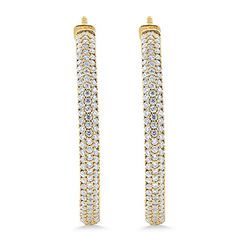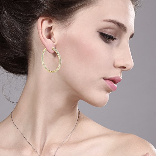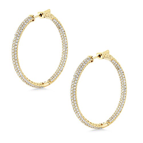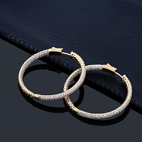 MEASUREMENT - 35mm = 1.5 Inch; 18K Yellow Gold Plated CZ Pave Yellow Gold Color Hoop Earrings