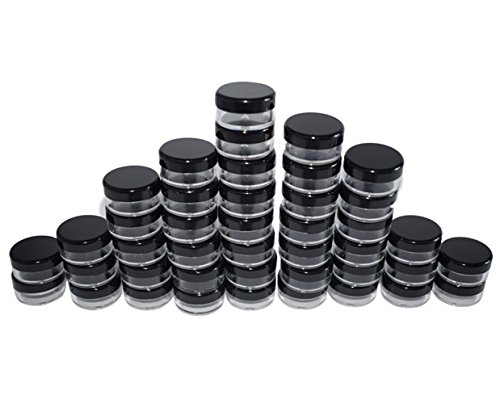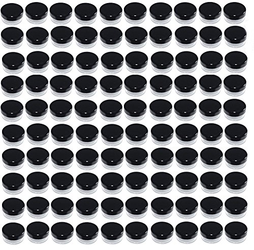Bekith 100 set Clear Empty 3 Gram/3ML Plastic Pot Jars, BPA Free Cosmetic Sample Empty Container, Black Screw Cap Lid, for Make Up, Eye Shadow, Nails,...