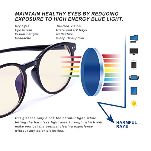 -. Feature : ANTI HARMFUL BLUE LIGHT-Study shows that high energy blue light emitted by electronic devices (such as computers/ smartphones/ TV) will increase the risk of vision conditions from sore dry eyes to macular degeneration. Maintain healthy eyes by reducing exposure to high energy blue light. / BLOCKS 90% OF HIGH ENERGY BLUE LIGHT- The lens prevents the harmful short wave blue light from visible light. It prevents our eyes from being injured by computers, mobile phones, digital products, LED and fluorescent lamps for a long time, so that we can enjoy the life of technology while ensuring the health of our eyes. / REAL COLOR/ NO COLOR DISTORTION - SIPHEW glasses, make a difference compared with other styles. The spectrum lenses don't distort screen colors or have a harsh yellow tint. Our glasses only block the harmful light, while letting the harmless light pass through, which will make you get the optimal viewing experience without any color distortion. / ULTRA LIGHTWEIGHT & FLEXIBLE TR90 NYLON FRAME-Material for durability and comfortable long-term wearing, and the TR90 frame make you feel weightless when you are putting on it. Casual frame design keeps you looking professional and stylish while working or playing video games. / IMPROVED VISUAL EXPERIENCE OR REFUND 100% FOR FREE - We're so confident that our glasses will provide you better screen viewing that we offer a full 60 days money back guarantee. Your shopping is absolutely RISK FREE. If for any reason you're not completely satisfied the products, you can contact us for full refund.