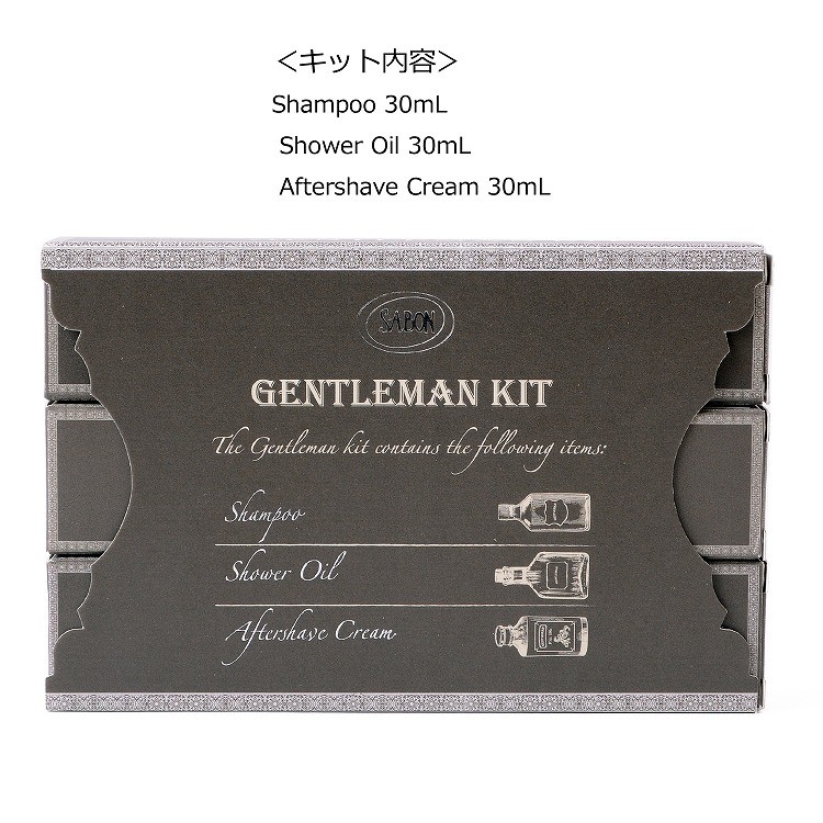 | キット内容 | シャンプー 30mL シャワーオイル 30mL アフターシェービング 30mL |