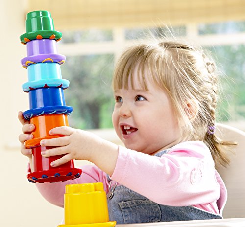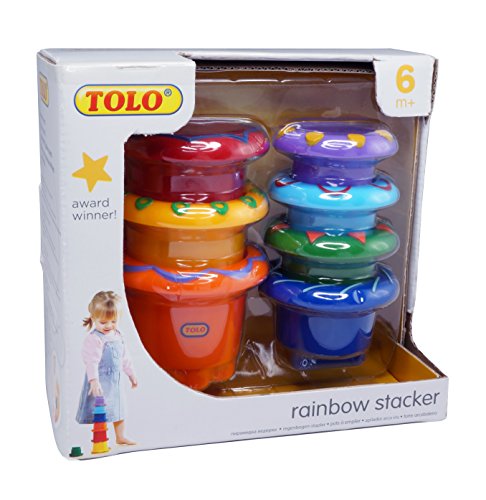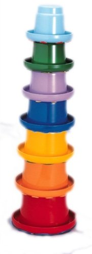 Product DescriptionRAINBOW STACKERSeven brightly colored hats to stack, nest and sort. Great for bath time, beach and outdoors. Each hat has a different shaped bottom and textured rims. Age: from 6 months.