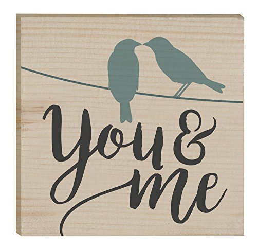 You & Me Love Birds Script Design 3 x 3 Inch Solid Pine Wood Rustic Magnet