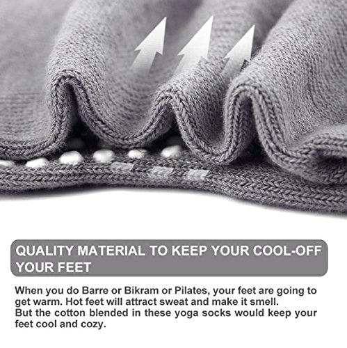 • FREE OF SWEAT – If you use regular socks for your Barre or Bakramyogas, then your feet would soon start to sweat. It makes your feet wetter and would knock you off balance while doing one leg poses and such. The yoga socks, on the other hand, keeps your feet cool by regularly allowing air to pass through. This gives you sweat free feet.