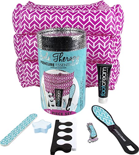 Studio : Onyx Professional Publisher : Onyx Professional Binding : Health and Beauty Product Description Relax Sole Therapy at home Pedicure Pail. Complete with everything you need for the ultimate spa experience in the comfort of your own home. Treat yourself... You deserve it! Contains all the pedicure essentials. 10 Piece Pail Includes: 2 Pair Toe spacer,s 1 Designer Nail Clipper, 1 Soothing Foot Soak, 2 Manicure Sticks, 1 Foot File, 1 Relaxing Inflatable Foot Bath, 1 Hand Foot Cream Coconut Scent, 1 Nail File. 0