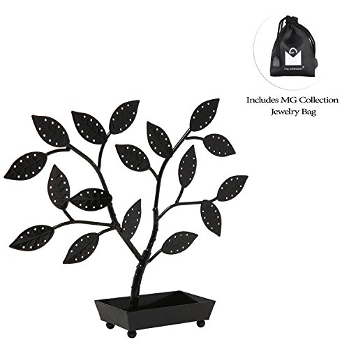 - Feature : Decorative earring & jewelry hanger elegantly designed to look like a tree. / Each leaf has 8 small holes for hanging earrings, which allows this jewelry hanger to hold up to 68 pairs of earrings. / The rectangular tray at the bottom can be used to store rings, bracelets, necklaces, and other items. / **Official MyGift® product, includes our signature satin jewelry bag.** Jewelry not included. / Approximate Dimensions: 13.75" W X 12.25" H X 3.25" D.