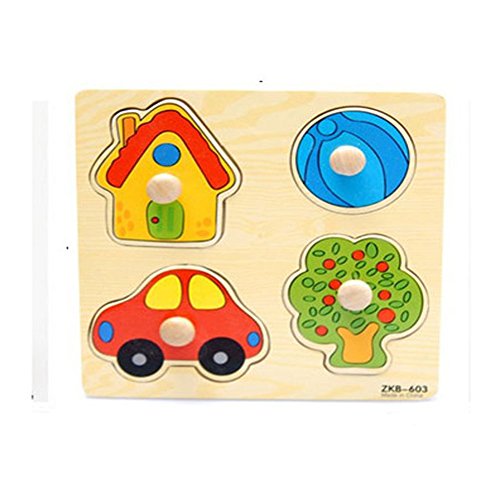 -. Binding : Office Product -. Brand : Panda Superstore -. Feature : Home pegged puzzles (house,car,football,tree). / 4 pieces of puzzles; size about 14.8*14.8*0.6cm(5.8*5.8*0.2''). / Recommended Age Range 2 Years. / It correctly guides the children's observation and cognitive characteristics of colors, shapes, and animals. / More colourful would be loved by your kids. -. Label : Panda Superstore -. Manufacturer : Panda Superstore -. MPN : PS-TOY166403011-ADA00023 -. PackageQuantity : 1 -. PartNumber : PS-TOY166403011-ADA00023 -. ProductGroup : Toy -. ProductTypeName : TOYS_AND_GAMES -. Publisher : Panda Superstore -. Studio : Panda Superstore -. Title : Set of 3 Home Pegged Puzzles Wooden Animals Puzzle Age for 2 Years 14.8*14.8CM