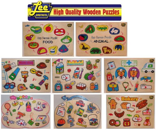 -. Binding : Toy -. Brand : Lee Brothers -. EAN : 0723794643955 -. Feature : This is a special pack of the wooden puzzles featuring all 8 styles. One of each of the following puzzles is included: Cap Verses Woden Puzzle: Food by Lee Brothers Toys Supermarket Wooden Peg Puzzle by Lee Brothers Toys Work Shop Wooden Peg Puzzle by Lee Brothers Toys Wooden Puzzle Cap Verses Puzzle: Animal by Lee Brothers Toys Hospital Wooden Peg Puzzle by Lee Brothers Toys Girl Bag Shaped Wooden Peg Puzzle by Lee Brothers Toys Boy Bag Shaped Wooden Peg Puzzle by Lee brothers Toys Bakery Wooden Peg Puzzle by Lee Brothers Toys Features: High Quality Wooden Construction Image printed directly onto wood Natural Soy based ink Educational and Fun -. Label : Lee Brothers -. Manufacturer : Lee Brothers -. MPN : Combo Pack -. PackageQuantity : 1 -. PartNumber : Combo Pack -. ProductGroup : Toy -. ProductTypeName : TOYS_AND_GAMES -. Publisher : Lee Brothers -. Studio : Lee Brothers -. Title : Wooden Puzzle Promo Pack of all 8 Lee Brothers Toys Wooden Puzzles -. UPC : 723794643955