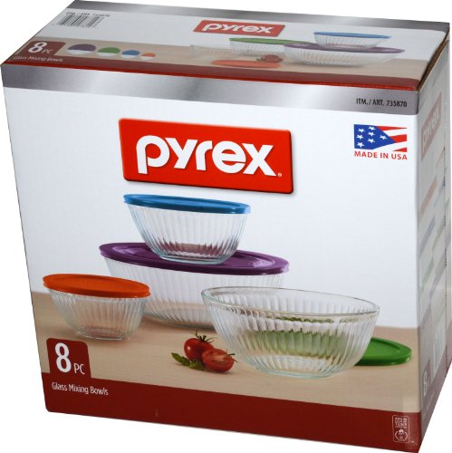 -. Title : Pyrex 8 Piece Ribbed Bowl (4) Set Including Locking Lids