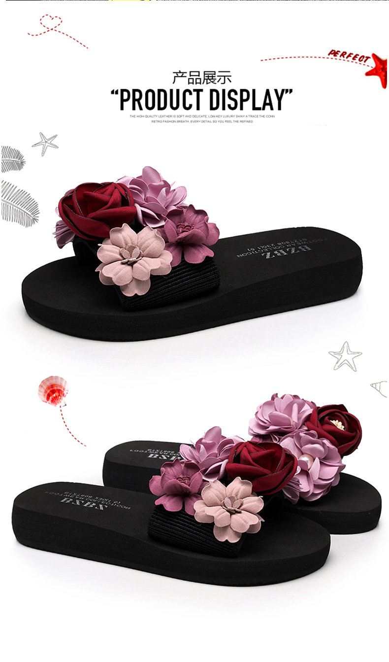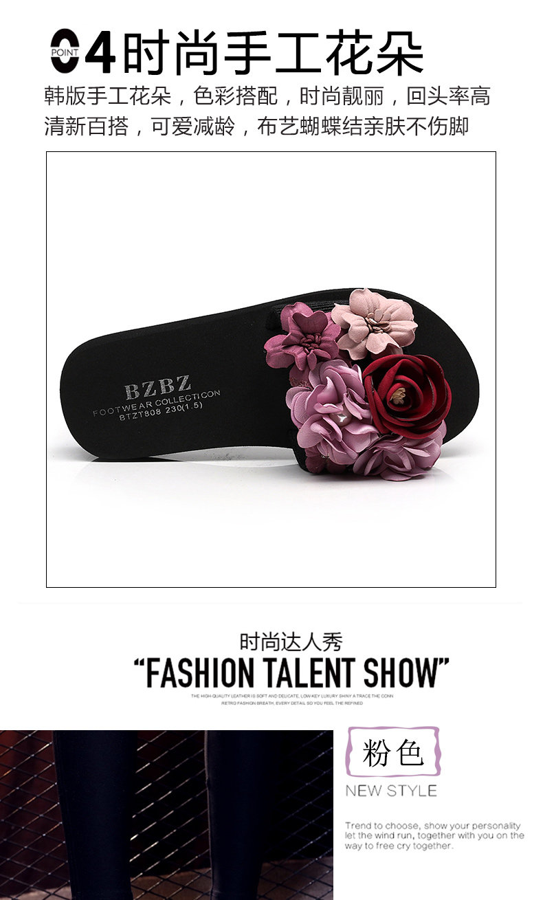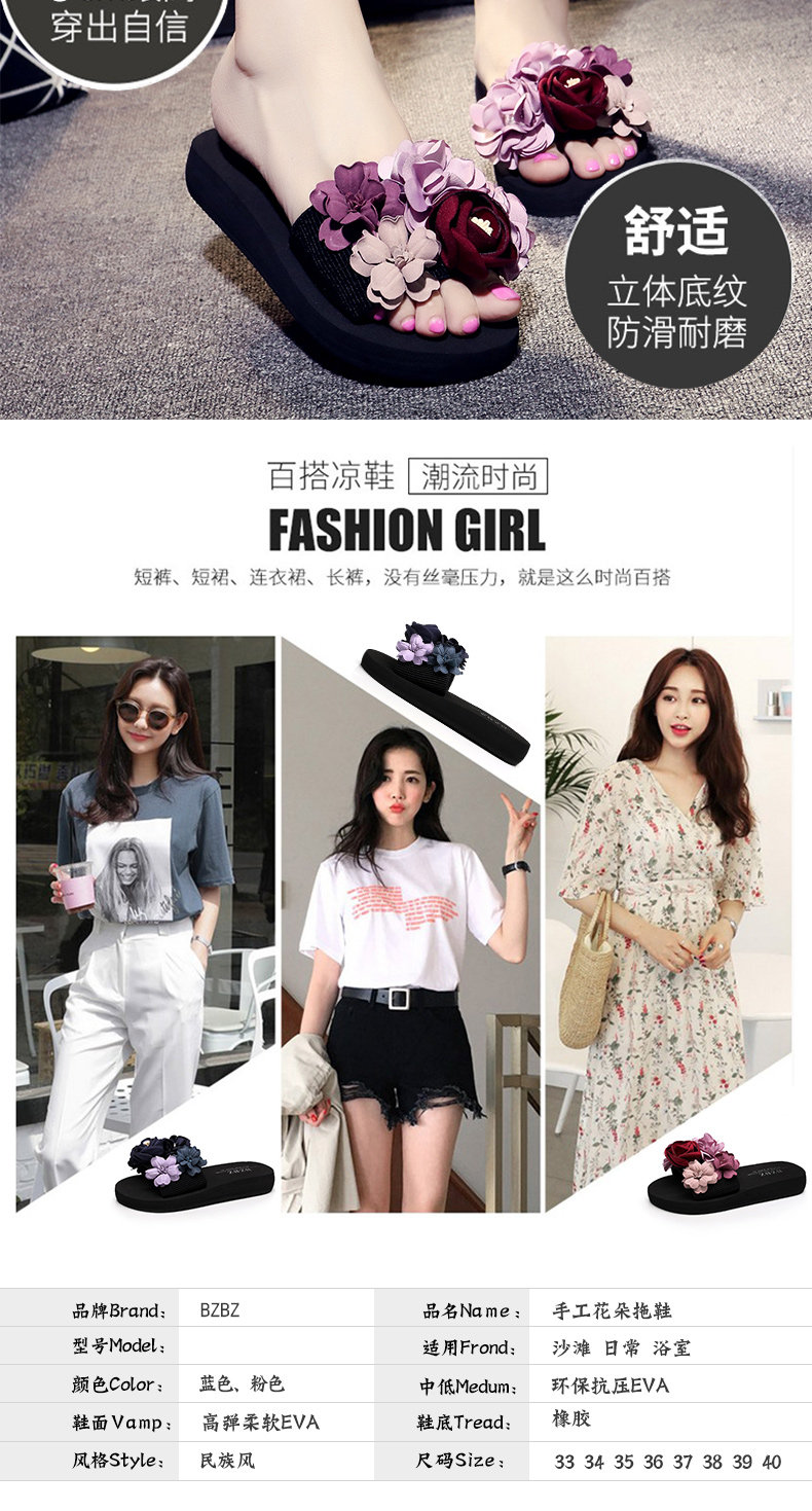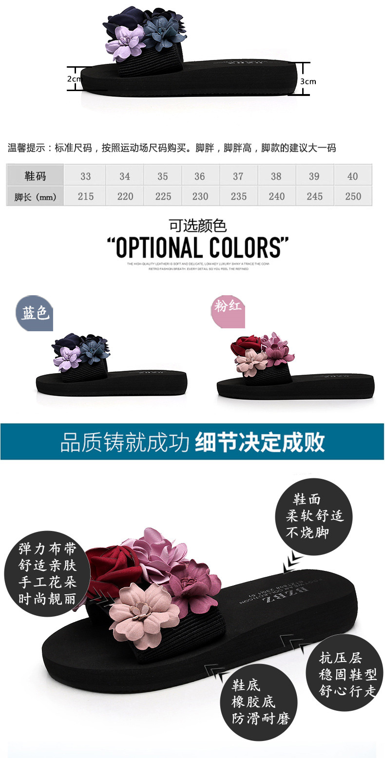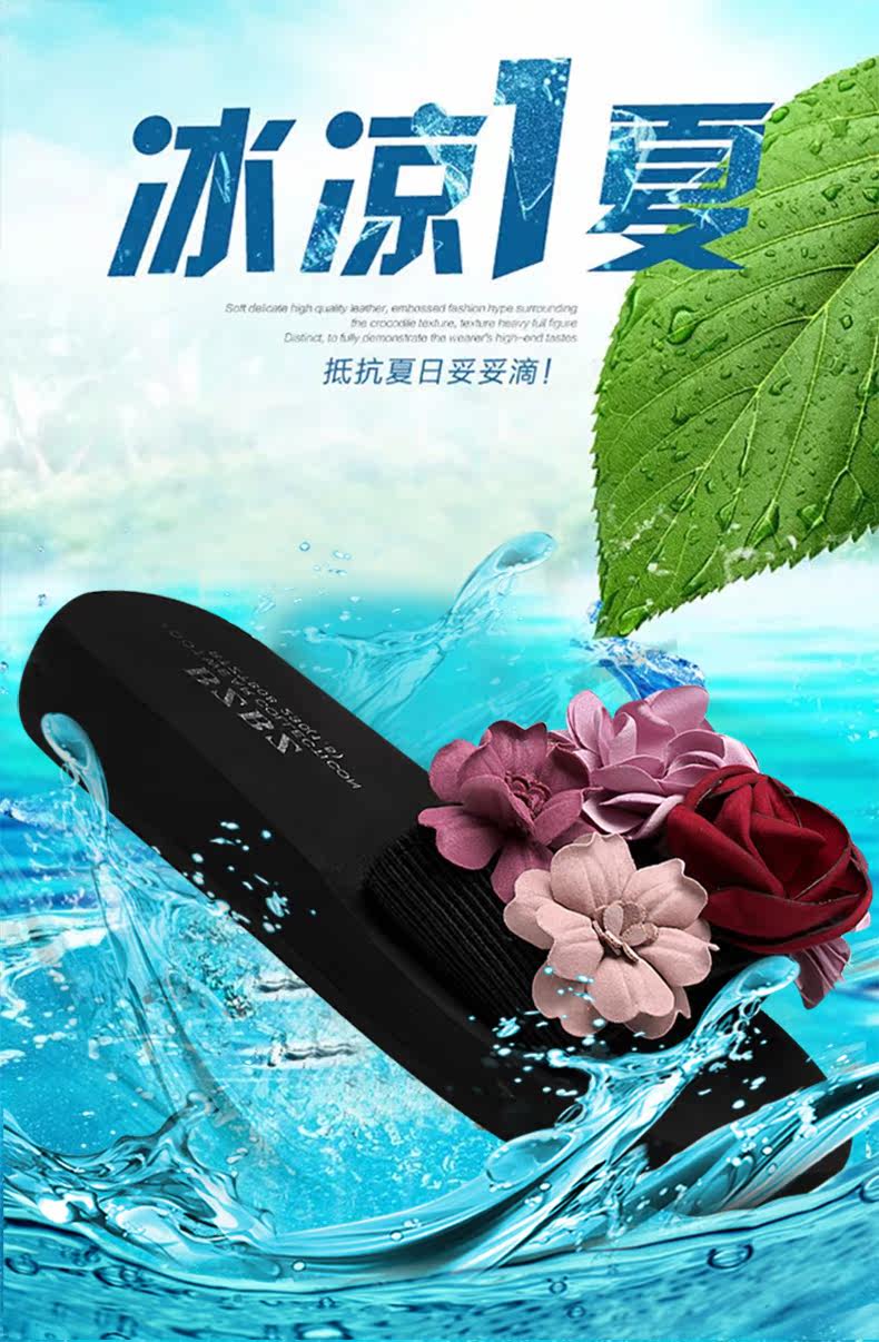 新款女夏外穿平底一字拖鞋时尚韩版甜美花朵沙滩鞋厚底防滑凉拖鞋