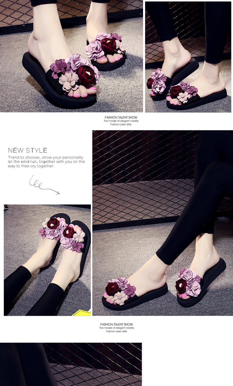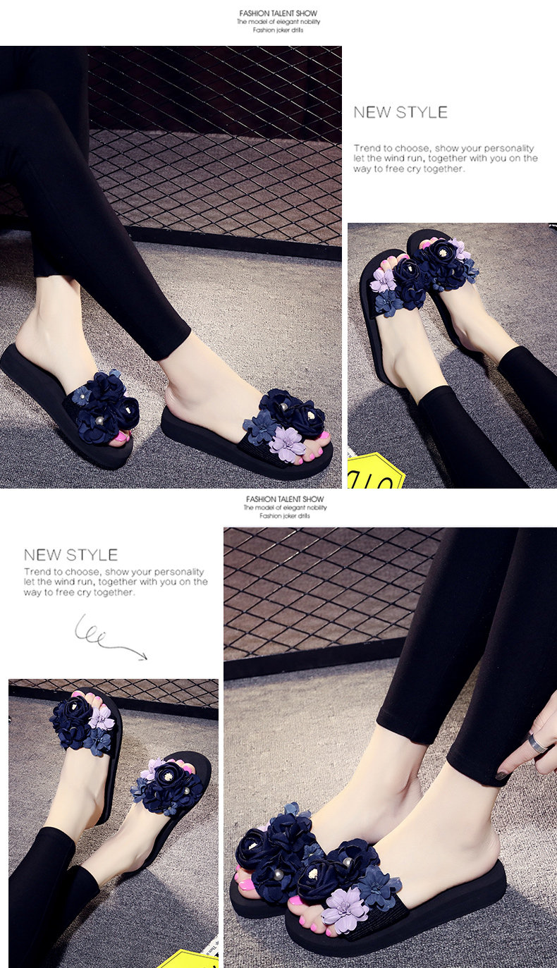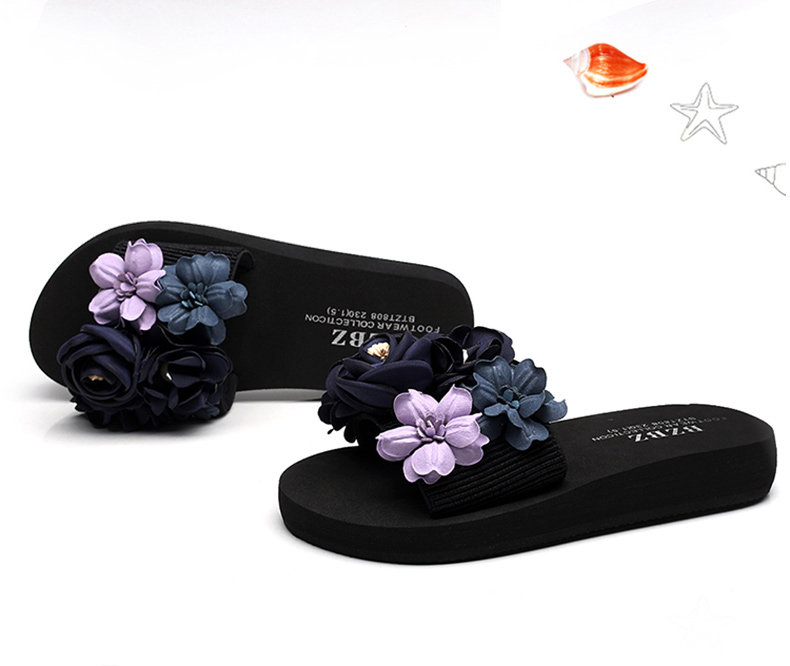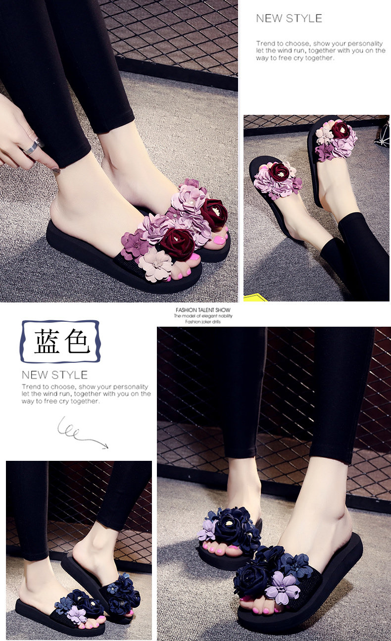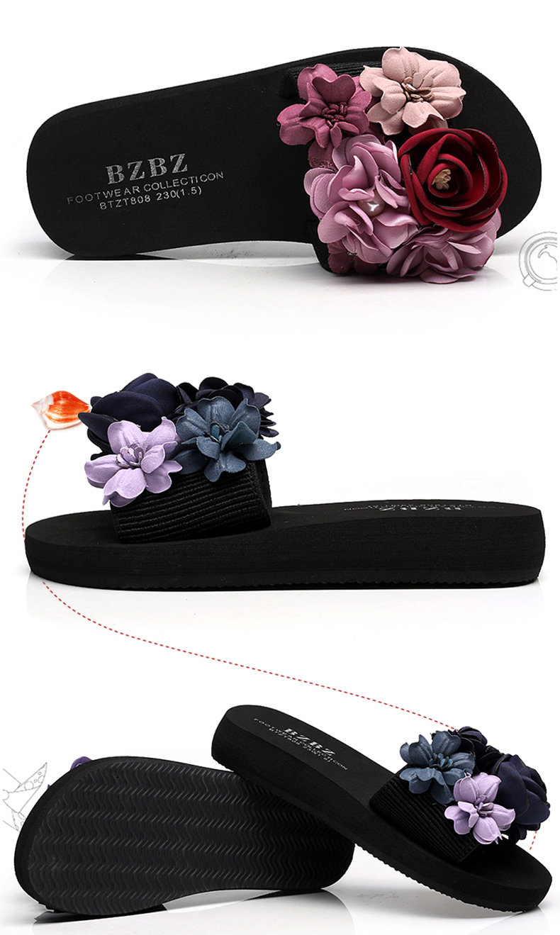 新款女夏外穿平底一字拖鞋时尚韩版甜美花朵沙滩鞋厚底防滑凉拖鞋