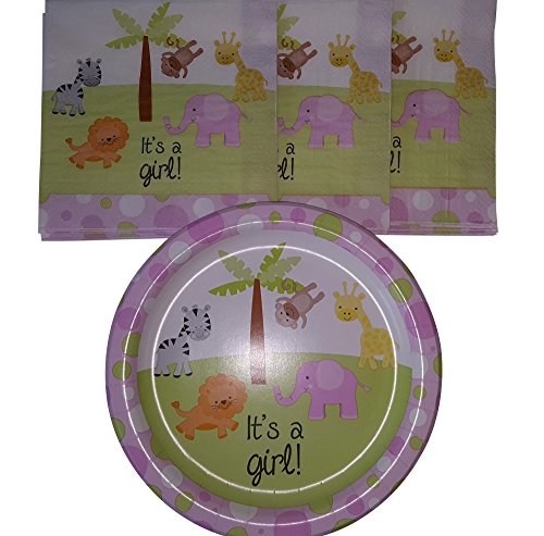 "It's A Girl!" Baby Shower With Animal Theme Design 8¾" Plates and Napkins