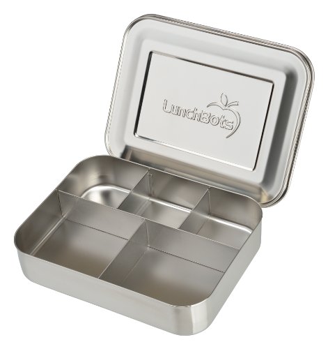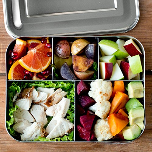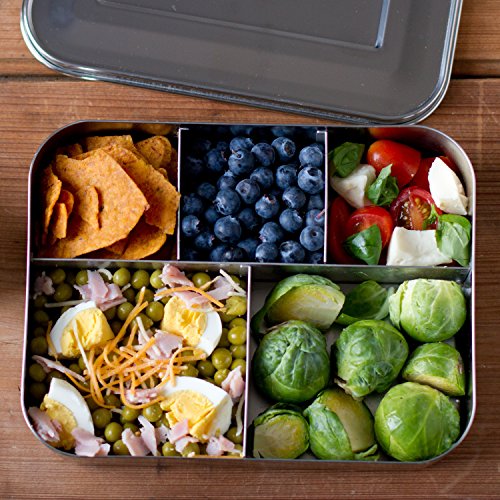 LunchBots Bento Cinco Large Stainless Steel Food Container - Five Section Design Holds a Well-Balanced Variety of Foods - Eco-Friendly Bento Lunch Box - Dishwasher Safe and BPA-Free - All Stainless