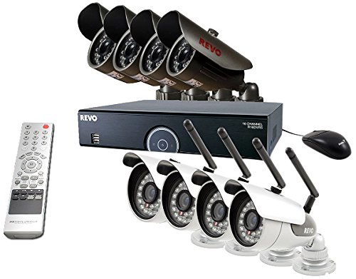REVO America R165WB4EB4E-2T 16 CH 2 TB DVR Surveillance System with 4 Wireless Bullet Cameras and 4 Wired Bullet Cameras (Black)