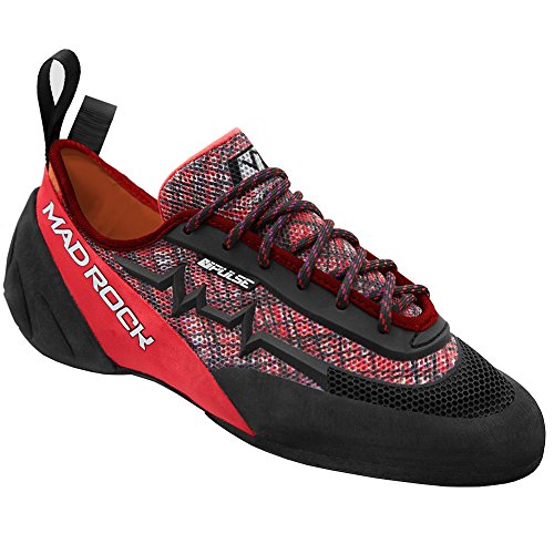Studio : Mad Rock Publisher : Mad Rock Product Description The Pulse gives you a unique fitting system to ensure that you Find Your Fit. By producing this all-around model in two different volumes, you can now fine tune the length and volume of your climbing shoes between the Positive (High Volume, Blue) and the Negative (Low Volume, Red) versions. Constructed with a breathable mesh upper, speed-lacing system, and EVA Shock Heel this model is sure to jump start your climbing! Classification: All Around High Performance. Closure: Lace. Stiffness: 3. Shape: Asymmetric. Toe Patch: TPR. Toe Patch Thickness: Variable. Midsole Material: Compressed Polyester. Heel: 3D Molded PHH. Color: Red and Blue. 0