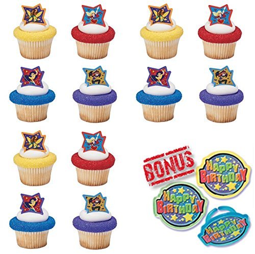 DC Super Hero Girls Just Be Awesome! Cupcake Toppers and Bonus Birthday Ring - 25 pieces