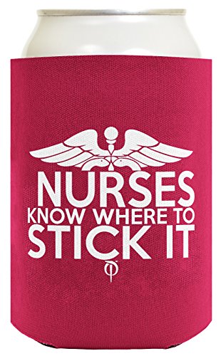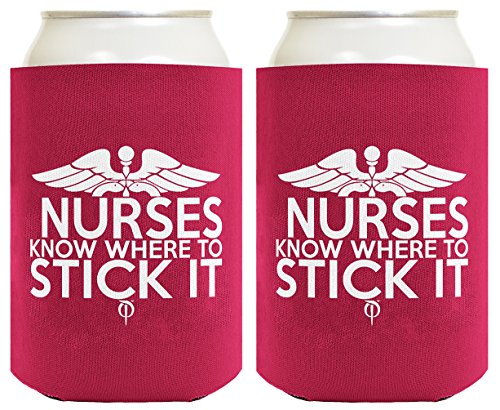 Funny Can Coolie Nurses Know Where to Stick It Gift 2 Pack Can Coolies Drink Coolers Magenta