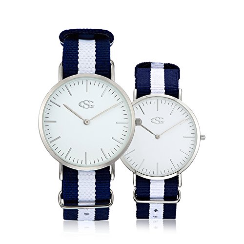 -. Title : GEORGE SMITH Classic Wrist Watches His and Hers Couples Stainless Steel Watch With Striped Nylon Band