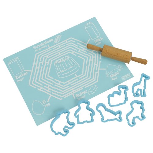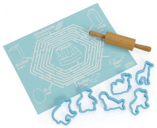 Studio : Kaiser Publisher : Kaiser Binding : Kitchen Product Description Perfect for baking at home with the kids, this Kaiser Bakeware Bake and Play 8-piece kid's party set lends itself to creating baked goods with kids, while promoting children's confidence in the kitchen. This set includes a silicone mat, beechwood rolling pin, and 6 assorted animal cookie cutters. The Kaiser Bake and Play collection features children's-sized baking accessories that will teach and entertain all at the same time. Kid-friendly recipes included. 0