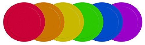 -. Feature : Sold in a set of 6; one of each color / Flat 9" discs / Can be used indoors or out / rubber discs
