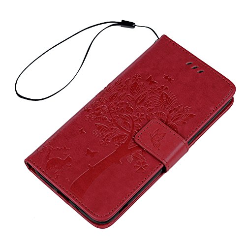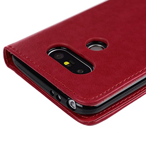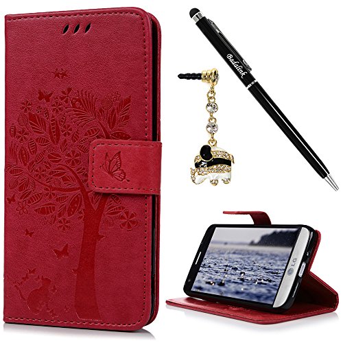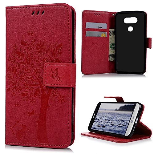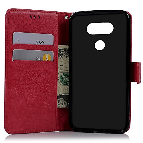 Badalink LG G5 Wallet Case LG H868 Wallet Case Flip Folio Stand Case Embossed Tree PU Leather Case with Slim-Fit Protective Shockproof TPU Inner Bumper Card Slots Hand Strap for LG G5/LG H868 - Red