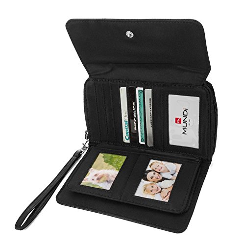 The MUNDI Women's RFID Blocking Wallet Big Fat Wallet: This wallet clutch organizer will keep you organized and looking stylish. This is the same best selling MUNDI Big Fat Wallet that you have enjoyed and loved for so many years but with the new added Feature of RFID Blocking technology as well as 2 bonus RFID Blocking Sleeves / cards that you can give to your husband or boyfriend so they can be protected also.
