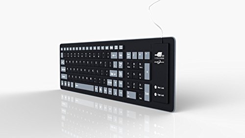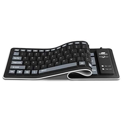 -. Feature : Flexible, Soft, Foldable, Roll-up, Silent, Waterproof, Dustproof, Lightweight, Portable and easy to store. Multiple function make it an extraordinary computer keyboard! / Soft silicone material: Made of high intensity and high elasticity silicone gel, non-toxic and odorless. Flexible material allow you to fold it or roll up freely, very handy and convenient to take with notebook, laptop and mac. / Waterproof and dustproof: No additional keyboard cover skin required, food crumbs or dust can be easily cleaned thoroughly. Clean the silicone keyboard with water, alcohol, or alcohol based disinfectant. / Silent Type: Soft material allows discreet silent typing experience. No typing sound design makes you have a quiet working environment and avoid disturbing others. At night, it can keep your family have a good sleep and also keep you do work seriously. / Simple wired USB connection , support main USB port, Plug and Use, Compatibility: Laptop, Notebook, Computer.